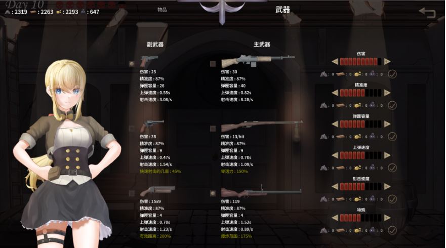 有三种主武器和三种副武器可供选择。